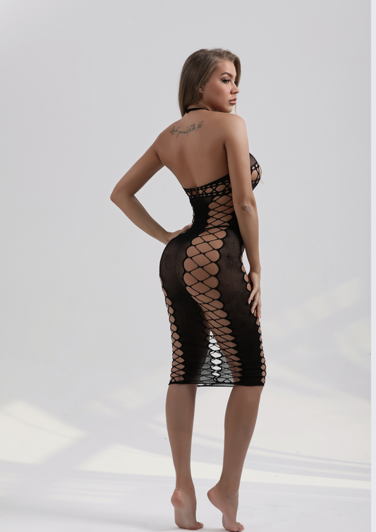 Seductive Midnight Halter Bodystocking – Sexy Lace Lingerie for Alluring Full-Body Seduction